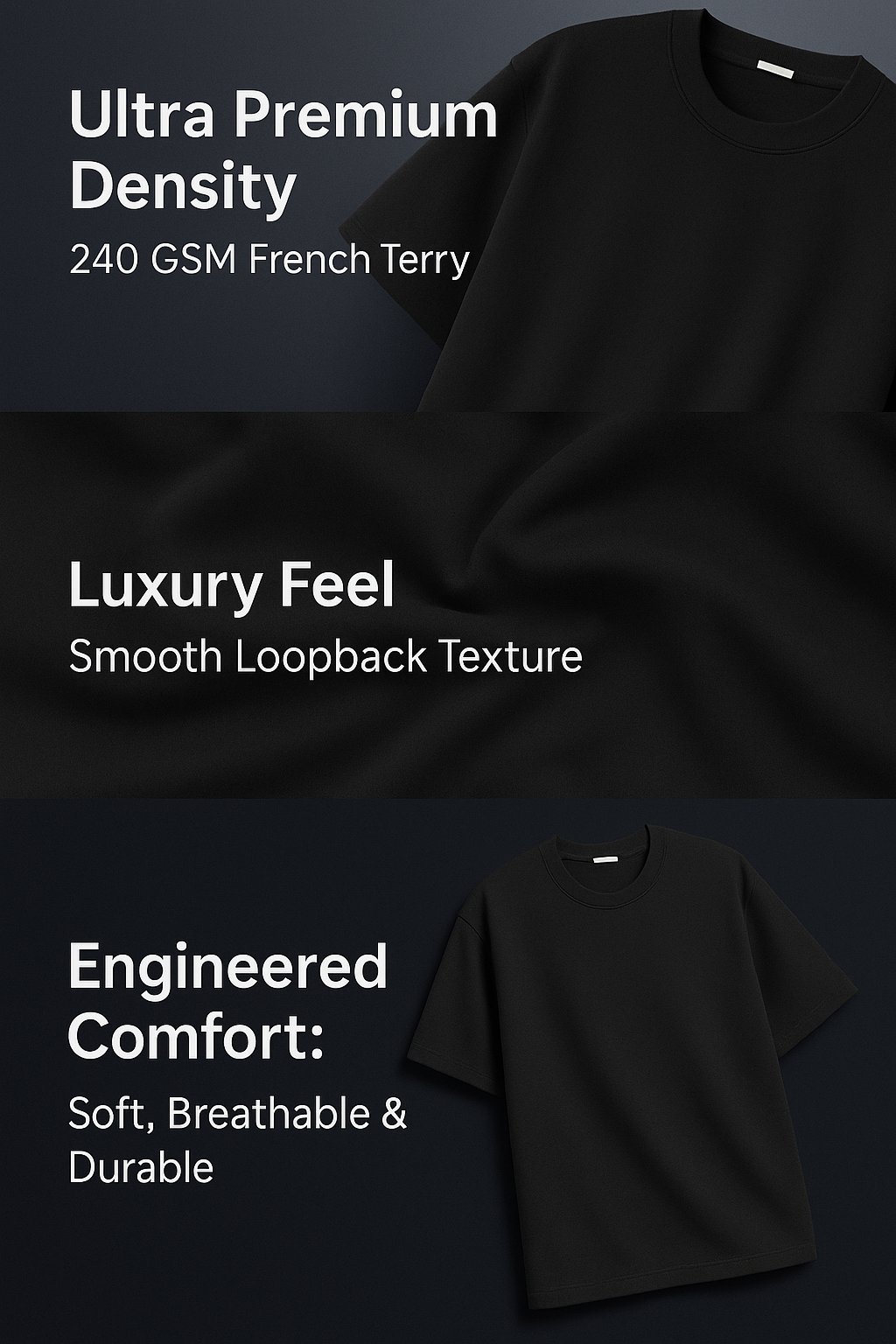 Experience the unmatched feel of our 240 GSM French Terry — where luxury meets resilience. Every stitch is designed for comfort, strength, and serious style.
