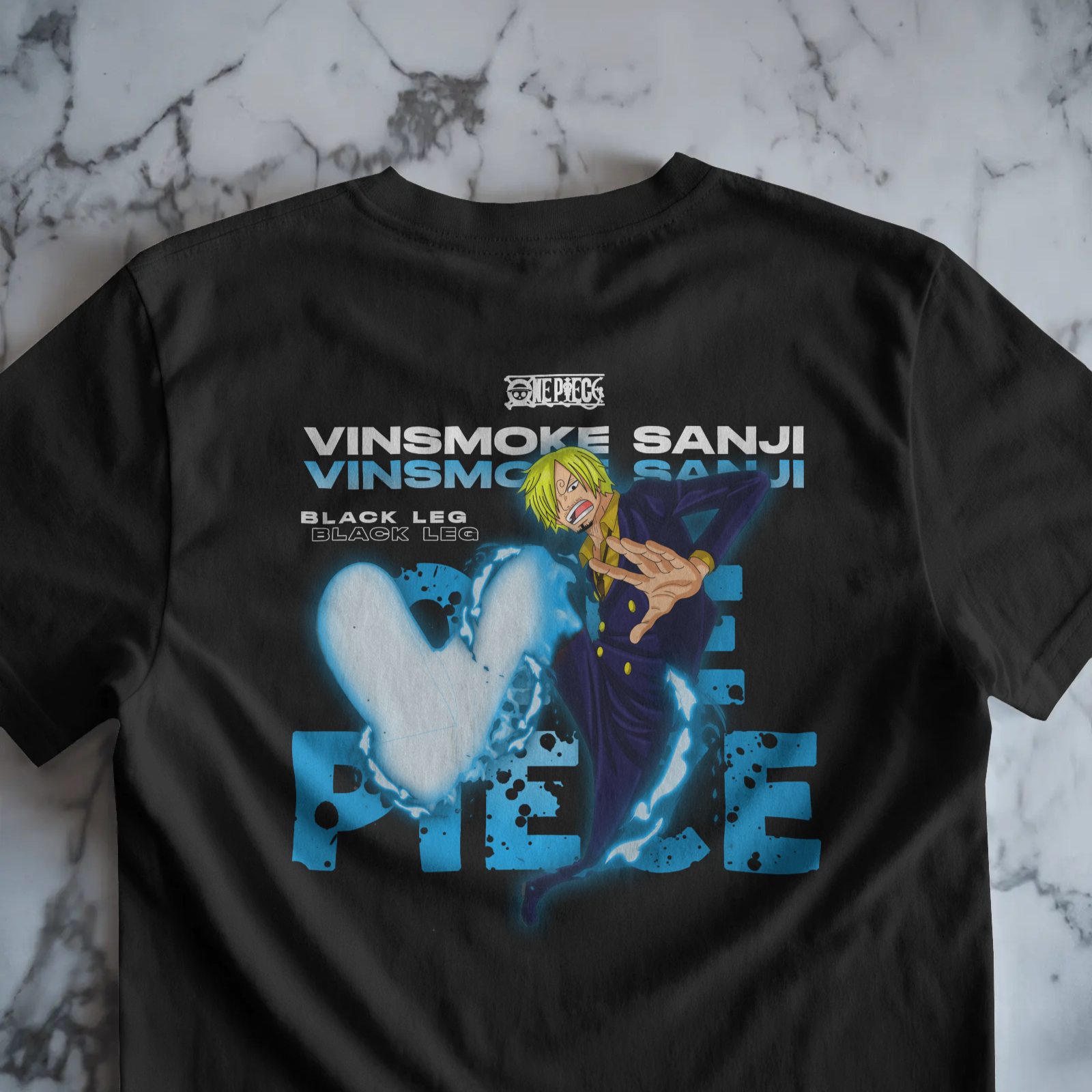 This tee features Sanji in his most composed yet lethal form, stepping into battle in a flurry of icy blues and white flame glow. The clean lines reflect his refined power, while hints of fire flicker behind him — not wild, but controlled.