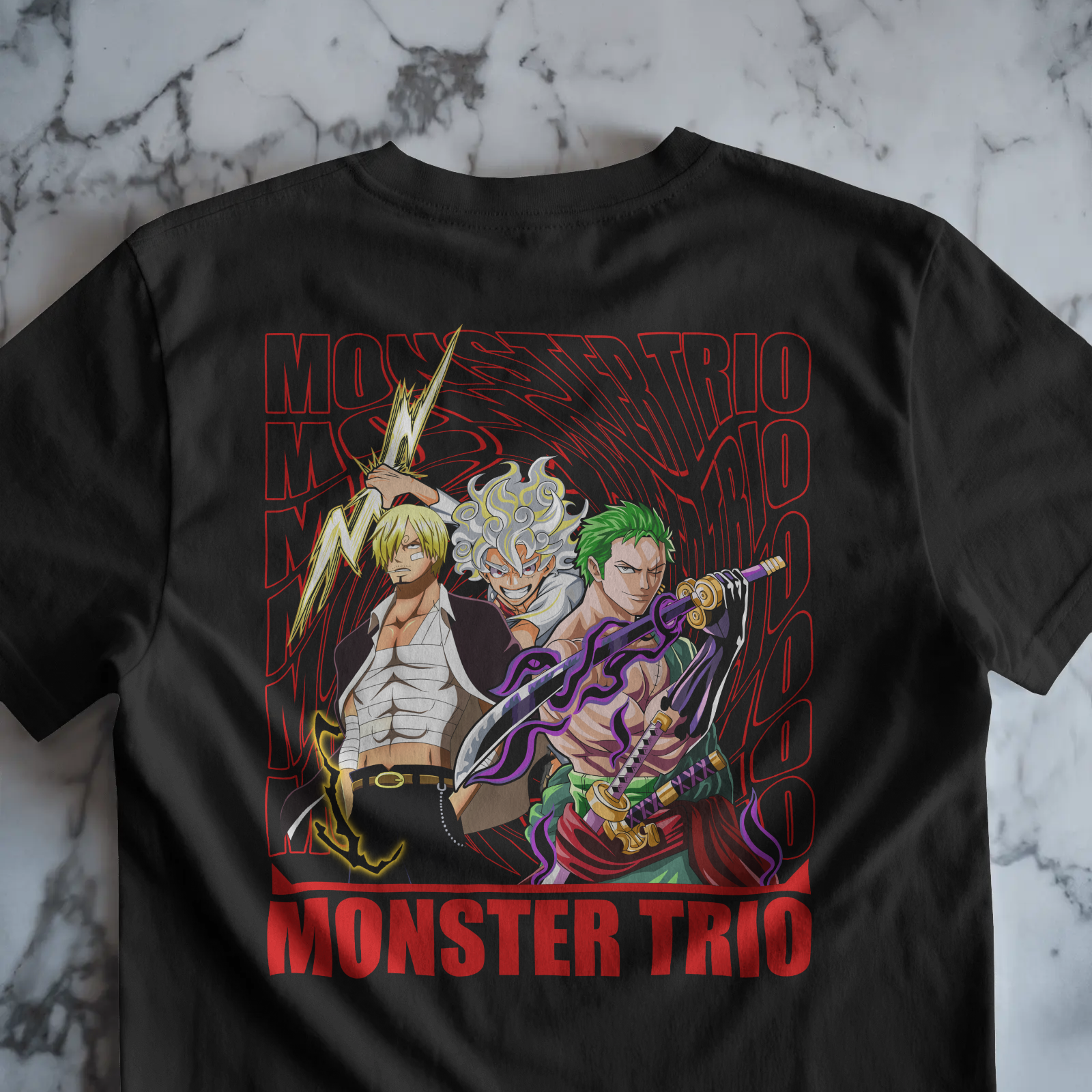Luffy, Zoro, and Sanji—each a storm in their own right. This design unites the heart, the blade, and the flame of the Straw Hats in a bold tribute to the crew’s unstoppable core. Power, loyalty, and chaos in perfect balance.