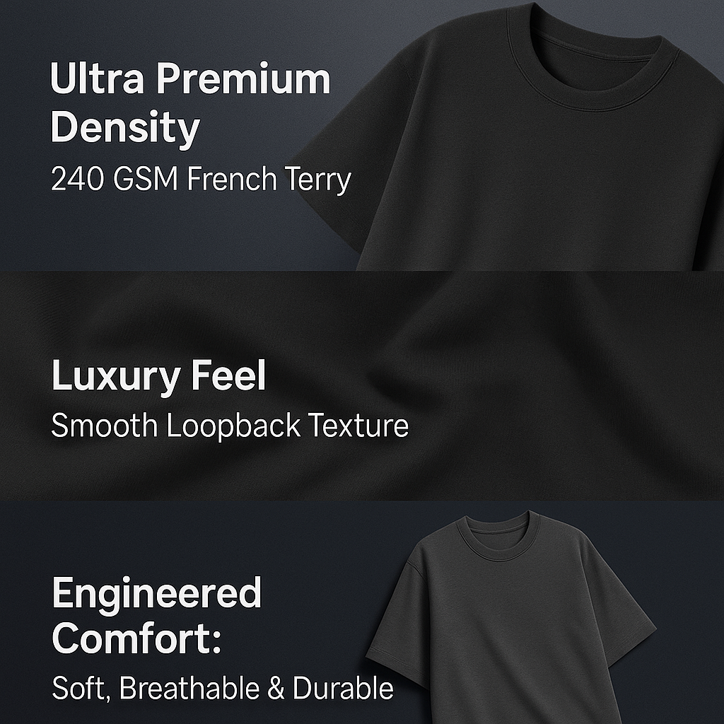 Experience the unmatched feel of our 240 GSM French Terry — where luxury meets resilience. Every stitch is designed for comfort, strength, and serious style.