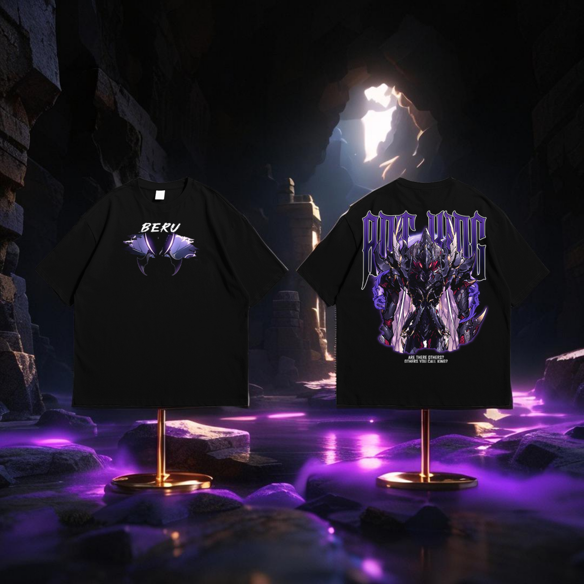 Royal Guard Ascension" channels the overwhelming might and twisted regality of Beru, the former Ant King reborn as Sung Jinwoo’s most loyal and terrifying shadow. Towering with insectoid elegance, Beru’s obsidian exoskeleton glistens with a violet sheen, while arcane energy pulses from his wings and claws. This design immortalizes the moment of his transformation—from a monstrous tyrant to a noble, unyielding protector. Cloaked in menace yet radiating royal grace, Beru stands with razor-sharp poise, wings slightly unfurled, ready to unleash carnage in the name of his sovereign. His presence is not just commanding—it’s imperial.